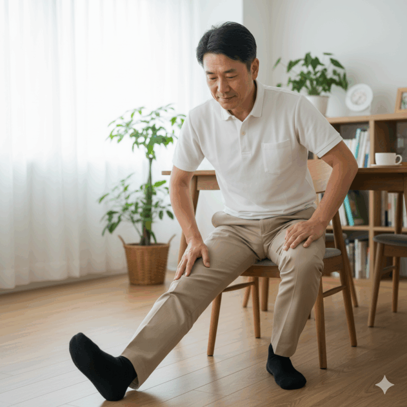 → 椅子に座り、片脚を前に伸ばしてつま先を軽く引く - お腹まわり(体幹)をゆるめる