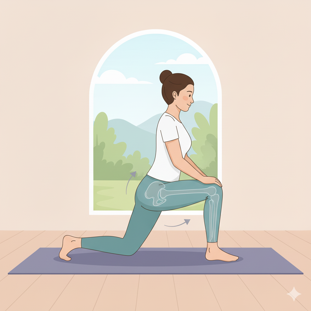 3. 太ももの前側(股関節の前面)が伸びるのを感じたら、20〜30秒キープ。