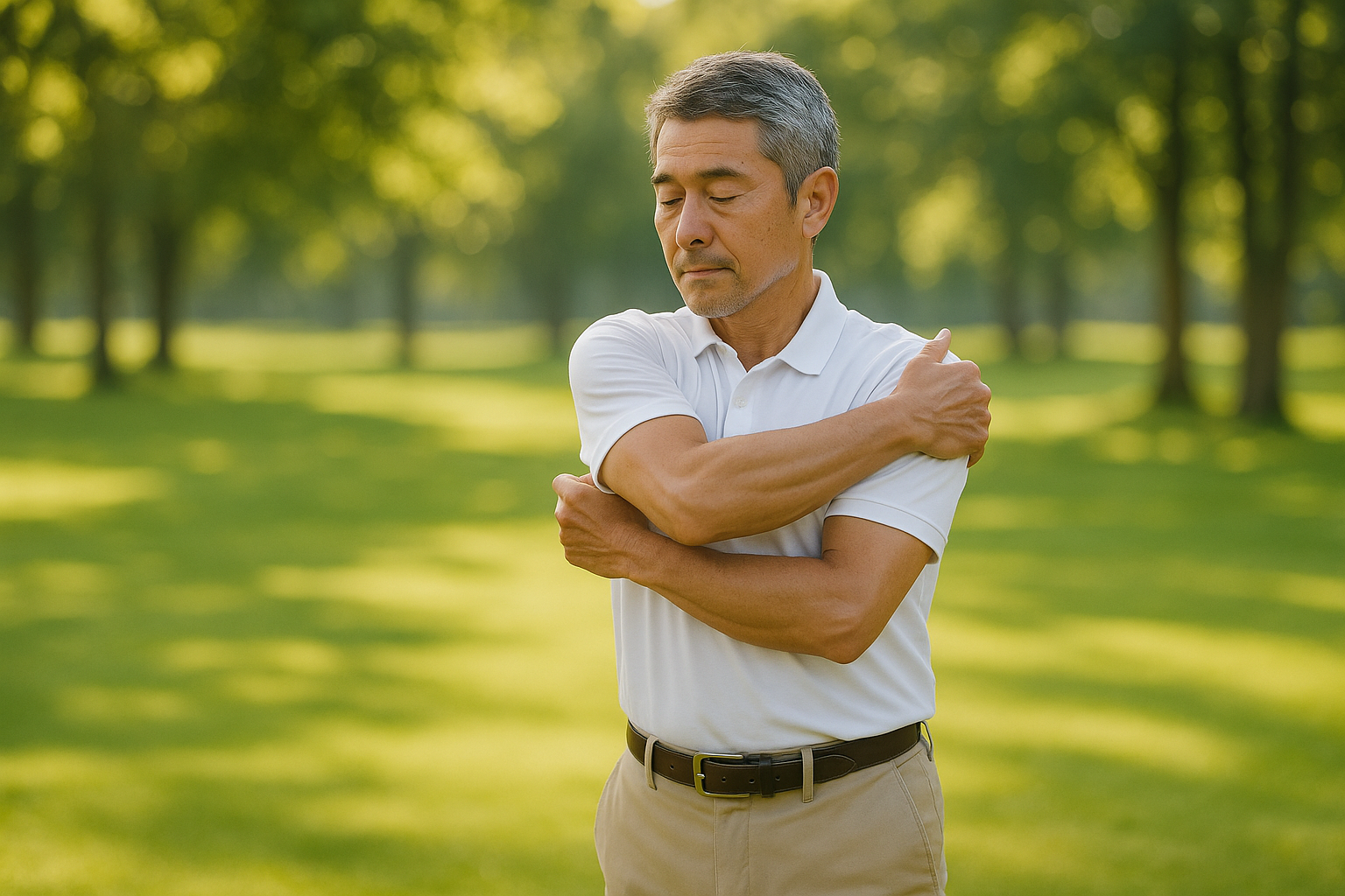 スポーツ庁の資料でも、ゴルフのように全身を使う競技では体幹部と肩甲帯(肩周囲)の連動性がパフォーマンス維持に不可欠と示されています(スポーツ庁「中高年のスポーツ活動に関する調査」).